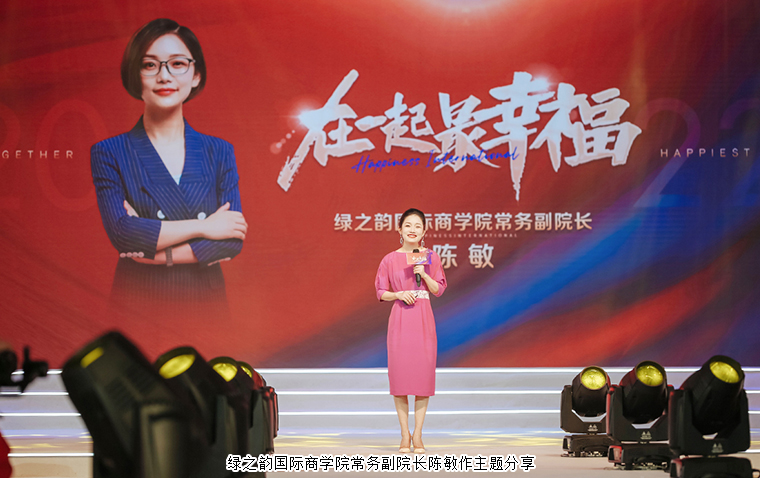 隨后,綠之韻國際商學(xué)院常務(wù)副院長陳敏作《在一起,最幸福》的主題分享,與綠之韻事業(yè)伙伴們一起回顧了綠之韻幸福國際第一個(gè)三年成長路上的幸??s影。