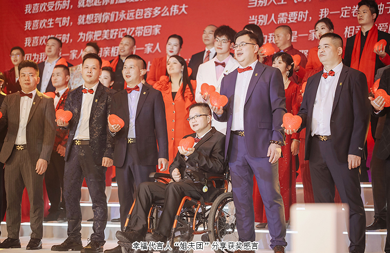 他們,披星戴月從不害怕,全力以赴從不猶疑,一路向前從不氣餒。因?yàn)樗麄冎?,家人的期盼是力量的源泉,家人的溫暖是最?jiān)強(qiáng)的依靠。綠之韻國際商學(xué)院常務(wù)副院長陳敏、綠之韻集團(tuán)市場運(yùn)營中心市場業(yè)務(wù)總監(jiān)喻鳴鸞為“2022年度最具幸福力家庭”頒獎(jiǎng),幸福代言人“姐夫團(tuán)”分享獲獎(jiǎng)感言。