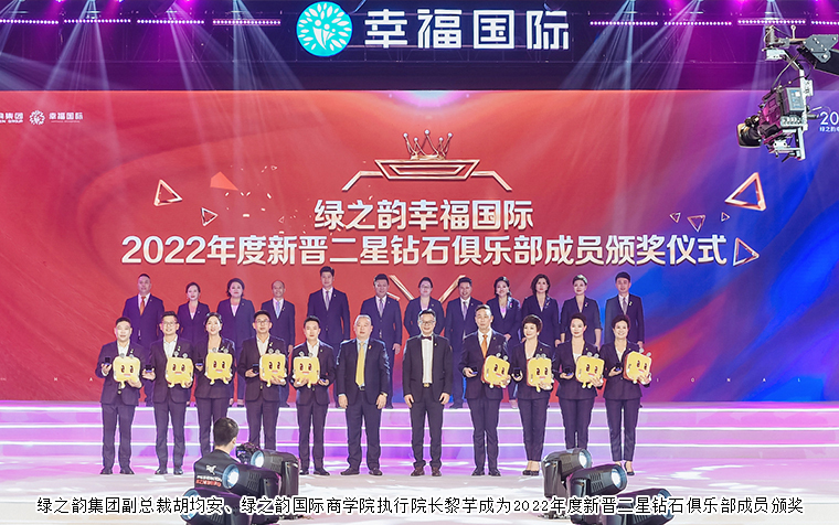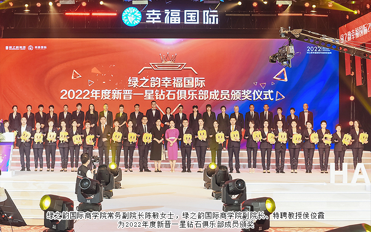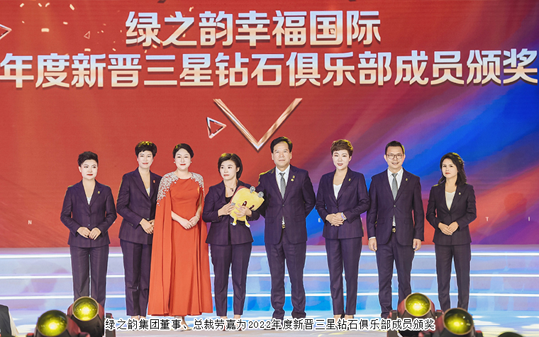 在幸福的道路上,有這樣一群堅(jiān)實(shí)的守護(hù)者,他們心懷熱愛,步履不停,用夢想融合新生,用榮耀成就巔峰,他們是為幸福奮斗的高階精英,他們是本次進(jìn)入鉆石俱樂部的最強(qiáng)王者。勇者無畏,破繭成蝶,迎來屬于他們的鉆石榮耀之旅。綠之韻集團(tuán)董事、總裁勞嘉,綠之韻集團(tuán)副總裁胡均安,綠之韻國際商學(xué)院執(zhí)行院長黎芋成,綠之韻國際商學(xué)院常務(wù)副院長陳敏,綠之韻國際商學(xué)院副院長、特聘教授侯俊霞分別為綠之韻幸福國際2022年度新晉一星、二星、三星鉆石俱樂部成員頒獎(jiǎng),獲獎(jiǎng)?wù)哧悤詵|、蘇裕涵、林景云分享獲獎(jiǎng)感言。