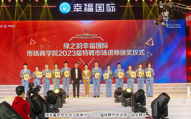 會(huì)議現(xiàn)場還舉行了綠之韻幸福國際商學(xué)院成立儀式,綠之韻國際商學(xué)院執(zhí)行院長黎芋成、綠之韻國際商學(xué)院常務(wù)副院長陳敏為綠之韻幸福國際市場商學(xué)院授牌,為院長、執(zhí)行院長、特聘教授、2023屆特聘市場講師頒發(fā)聘書。綠之韻幸福國際商學(xué)院的成立將成為綠之韻幸福國際的文化名片,將以最具市場化的姿態(tài)為幸福代言人提供最為廣闊的舞臺(tái)。