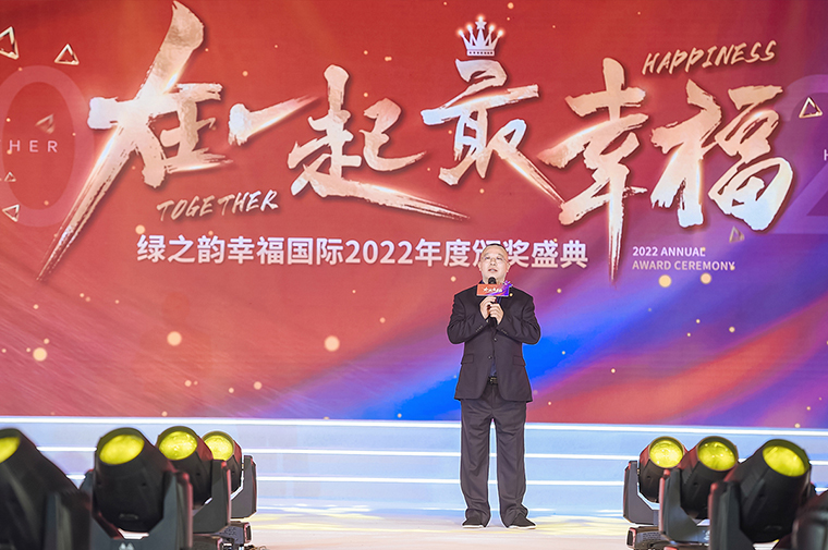 在全場熱烈的掌聲中,綠之韻集團(tuán)副總裁、幸福導(dǎo)師夏運(yùn)良作主題演講。他表示,不忘初心,三載前行,我們在牽掛與堅(jiān)強(qiáng)中走過艱難的三年疫情,到此刻終于在熱血與希望中迎來相聚的幸福時(shí)刻,所有等待都值得,所有經(jīng)歷都讓我們倍加珍惜這來之不易的幸福。沒有一個(gè)冬天不會(huì)過去,也沒有一個(gè)春天不會(huì)到來,希望所有的幸福代言人向陽而生,逆風(fēng)而上。只要我們在一起,就是最幸福的事。三年來,幸福國際出發(fā)時(shí)正處于行業(yè)的寒冬期,失去“天時(shí)”;緊接著爆發(fā)的疫情,讓我們失掉“地利”;唯一能支撐我們走到今天的只有“人和”。感恩在我們通往幸福道路上不斷給予支持的胡國安董事長、勞嘉總裁以及所有在背后為我們保駕護(hù)航的綠之韻同仁們;感恩每一位一起創(chuàng)造幸福的運(yùn)營團(tuán)隊(duì),感恩每一位發(fā)展委委員、特聘市場講師、市場核心骨干以及每一位幸福代言人。正因?yàn)橛心銈?,才讓不確定的2022年變得不遺憾,也堅(jiān)信“人和”這兩個(gè)字將成為綠之韻幸福國際長遠(yuǎn)發(fā)展的底氣。伴隨著打造品質(zhì)與品牌新三年的開啟,2023年,是綠之韻幸福國際生根、落地、結(jié)果的關(guān)鍵之年,我們要把產(chǎn)品做出效果,把服務(wù)做到極致,讓陪伴產(chǎn)生感覺,用同頻創(chuàng)造價(jià)值,締造未來更長期的發(fā)展愿景。只要我們在一起,絕對專注的走好我們選擇的同一條路,相信每一步都有方向,每一步都有希望,每一步都有未來。期待2023年火力全開,再攀高峰,為綠之韻集團(tuán)成立二十周年獻(xiàn)禮!