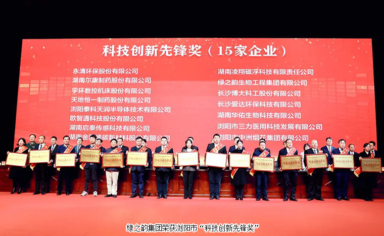 會上,中共瀏陽市委常委、常務副市長馮賽軍宣讀了由瀏陽市委市政府印發(fā)的《瀏陽市人民政府關于2022年度財政性資金獎勵政策兌現(xiàn)的通知》《中共瀏陽市委瀏陽市人民政府關于表彰瀏陽市勇當“強省會”戰(zhàn)略開路先鋒先進集體和先進個人的決定》,對近年來在瀏陽市深入貫徹黨的十九屆歷次全會及黨的二十大精神、全面落實“三高四新”戰(zhàn)略定位和使命任務、勇當強省會戰(zhàn)略開路先鋒、推動經(jīng)濟高質量發(fā)展中涌現(xiàn)出的一大批敢闖敢干、唯實惟先先進單位和個人予以表彰獎勵。綠之韻集團憑借著在產(chǎn)品研發(fā)、科技創(chuàng)新方面的優(yōu)異表現(xiàn)榮獲瀏陽市“科技創(chuàng)新先鋒獎”。