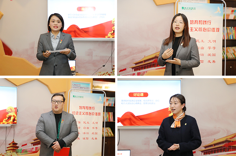 會議最后,綠之韻集團(tuán)黨委書記劉云講話。她首先對獲得“學(xué)習(xí)強(qiáng)國達(dá)人”稱號的優(yōu)秀黨員表示衷心的祝賀,希望獲獎黨員新的一年繼續(xù)努力,再創(chuàng)佳績。她表示,今天黨員們通過圖文并茂的方式進(jìn)行了黨課學(xué)習(xí),并結(jié)合自身工作崗位作了分享,這樣的形式很好。希望黨員們能再接再厲,將每月的政治學(xué)習(xí)的形式和內(nèi)容變得更加豐富和生動,做到在學(xué)習(xí)中成長,在成長中學(xué)習(xí)。隨后,劉云書記向在座黨員傳達(dá)了上周園區(qū)召開的黨務(wù)工作會議精神,2023年是全面貫徹落實黨的二十大精神的開局之年,作為一名黨員要將黨的二十大精神學(xué)深悟透學(xué)實。今年我們的黨建工作要注重思想引領(lǐng),緊抓理論學(xué)習(xí),促進(jìn)黨的二十大精神在企業(yè)走深走實;要強(qiáng)化管理意識,加強(qiáng)黨性錘煉,深化隊伍建設(shè),持續(xù)發(fā)揮戰(zhàn)斗堡壘和先鋒模范作用;要強(qiáng)化服務(wù)意識,激發(fā)組織活力,堅持以實為本,推動黨建與企業(yè)發(fā)展雙贏雙促;強(qiáng)化爭先創(chuàng)優(yōu)意識,堅持先進(jìn)引領(lǐng),走在前干在前,以高質(zhì)量黨建為集團(tuán)二十周年增光添彩。