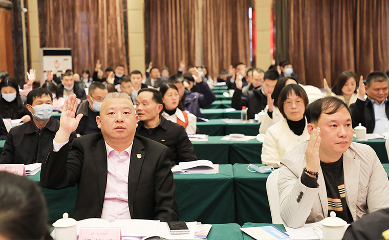 益陽市政協(xié)副主席、市工商聯(lián)主席、市總商會會長鄧象庭作題為《守正創(chuàng)新?lián)姑?奮楫篤行譜新篇 為全面建設(shè)現(xiàn)代化新益陽而團(tuán)結(jié)奮斗》的工作報告。他表示,第七屆市工商聯(lián)(總商會),立足本職,緊扣發(fā)展所需、回應(yīng)民生所盼、發(fā)揮商會所能,為益陽發(fā)展做了大量工作。在服務(wù)民營經(jīng)濟(jì)發(fā)展上有力度,形成“76999”格局。在優(yōu)化營商環(huán)境上有高度,聯(lián)合開展“百企評行風(fēng)”測評,組織100家民營企業(yè)對全市42家涉及營商環(huán)境的職能部門進(jìn)行滿意度測評。在奉獻(xiàn)社會上有溫度,“萬企興萬村”行動打造了21個示范村。在培元固本上有深度,“四好”商會建設(shè)獲3塊國字號牌匾。他指出,下一階段商會要繼續(xù)圍繞促進(jìn)“兩個健康”,在政治引領(lǐng)上達(dá)到新高度。一要深入學(xué)習(xí)宣傳貫徹黨的二十大精神。二要持續(xù)深化理想信念教育。三要著力強(qiáng)化商協(xié)會黨建工作。圍繞實現(xiàn)“暖企紓困”,在靠前服務(wù)上取得新成效。圍繞服務(wù)中心大局,在助推經(jīng)濟(jì)社會發(fā)展上彰顯新作為。要積極引導(dǎo)民企履行社會責(zé)任,圍繞提升組織建設(shè),在強(qiáng)基固本上實現(xiàn)新突破。要抓好基層組織建設(shè),做好會員發(fā)展工作,全面加強(qiáng)自身建設(shè)。