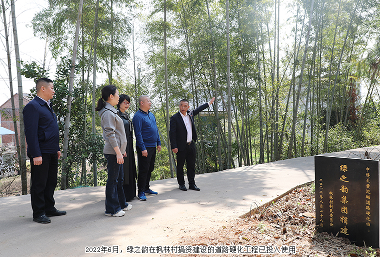 實(shí)施鄉(xiāng)村振興建設(shè)是黨和國家交給民營(yíng)企業(yè)的一項(xiàng)重要任務(wù)。一直以來,綠之韻都把建設(shè)美麗鄉(xiāng)村與企業(yè)發(fā)展相結(jié)合。2022年,綠之韻通過湖南省慈善總會(huì)捐資200萬元專門用于鄉(xiāng)村振興項(xiàng)目。綠之韻集團(tuán)黨委、公益基金會(huì)分別與瀏陽北盛鎮(zhèn)邊洲村、大瑤鎮(zhèn)楓林村、安化冷市鎮(zhèn)胡家村、邵陽羅家水村、永州勾藍(lán)瑤村、新化汝溪村等多個(gè)村委簽訂村企共建協(xié)議,并因地制宜,開展鄉(xiāng)村振興建設(shè)項(xiàng)目。其中,大瑤鎮(zhèn)楓林村就是綠之韻村企共建中的一站。綠之韻捐資10萬元用于楓林村道路硬化工程和提質(zhì)改造項(xiàng)目,希望幫助楓林村的居民打開致富路、安心路、幸福路,創(chuàng)造更加美好的生活。活動(dòng)當(dāng)天,綠之韻集團(tuán)副總裁胡均安帶領(lǐng)黨團(tuán)成員特意前往楓林村中連至黃泥坳道路硬化工程所在地查看項(xiàng)目投入使用情況。