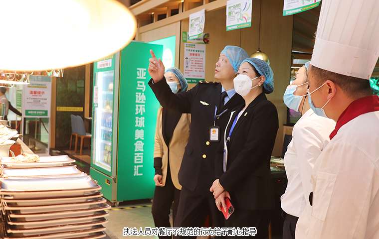 “存放在冰箱的食材是半成品嗎?需要用保鮮膜密封保存?!薄昂ur產(chǎn)品從哪里采購(gòu)的,可以看下進(jìn)貨臺(tái)賬嗎?”“煮沸消毒用了哪個(gè)桶?這個(gè)消毒桶要專(zhuān)用才可以。”隨后,檢查小組來(lái)到位于坡子街長(zhǎng)沙中心印象城內(nèi)的亞馬遜自助餐廳?;顒?dòng)中,執(zhí)法人員圍繞從業(yè)人員健康管理和個(gè)人衛(wèi)生、原料進(jìn)貨查驗(yàn)、食品加工制作、餐飲具清洗消毒、后廚環(huán)境衛(wèi)生、是否存在餐飲浪費(fèi)等經(jīng)營(yíng)行為進(jìn)行檢查,并對(duì)不規(guī)范的行為給予耐心指導(dǎo)。