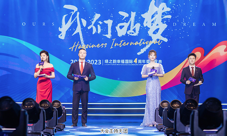 2023年6月18日,我們的夢——綠之韻幸福國際四周年榮耀慶典在集團(tuán)總部國際會議中心盛大舉行。綠之韻集團(tuán)董事長胡國安,董事、總裁勞嘉,副總裁、幸福導(dǎo)師夏運(yùn)良及集團(tuán)高管團(tuán)隊(duì),與來自全國各地的1000余名綠之韻家人匯聚一堂,共襄盛舉。大會全程通過PC、移動端在線互動視頻直播,線上近30000人次共同收看和分享了大會盛況。