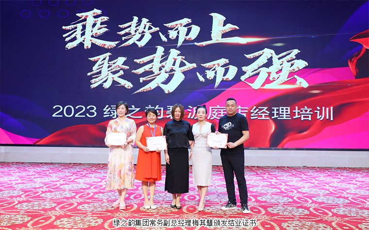 培訓(xùn)臨近結(jié)束,綠之韻集團(tuán)常務(wù)副總經(jīng)理梅其慧為綠之韻碧波庭的家人們頒發(fā)培訓(xùn)結(jié)業(yè)證書,并代表集團(tuán)公司向家人們致以誠(chéng)摯的問候,感謝綠之韻碧波庭事業(yè)伙伴一直以來(lái)對(duì)綠之韻的信任與支持。今年,是綠之韻與碧波庭牽手合作的第 13 個(gè)年頭,雙方互助共贏,取得了經(jīng)濟(jì)效益和品牌價(jià)值的“雙豐收”。未來(lái),集團(tuán)公司將繼續(xù)給予各位市場(chǎng)伙伴全方位的支持與幫助,努力建設(shè)一個(gè)更加穩(wěn)定、更加便捷、更加優(yōu)質(zhì)的健康事業(yè)平臺(tái),為市場(chǎng)發(fā)展保駕護(hù)航。希望每一位綠之韻人都能夠秉承初心,再接再厲,開創(chuàng)屬于自己的事業(yè)新篇章!