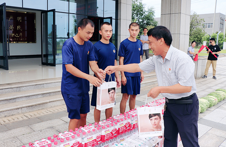 為慶祝建軍96周年,進(jìn)一步弘揚(yáng)新時(shí)代愛國(guó)擁軍的光榮傳統(tǒng),營(yíng)造軍民團(tuán)結(jié)、和睦和諧的良好氛圍,2023年8月1日,綠之韻集團(tuán)黨委組織開展“慶八一·送清涼”慰問瀏陽市金陽消防救援站指戰(zhàn)員主題黨日活動(dòng)。綠之韻集團(tuán)常務(wù)副總裁胡均安,黨委書記劉云,黨委副書記許達(dá)仲,工會(huì)主席馮紅帶領(lǐng)集團(tuán)黨委各支部退伍軍人、日用品工廠安全專干及行政后勤安全專干等赴共建單位——瀏陽市金陽消防救援站,向執(zhí)勤備戰(zhàn)一線的消防指戰(zhàn)員們致以節(jié)日祝福,送上慰問物資。