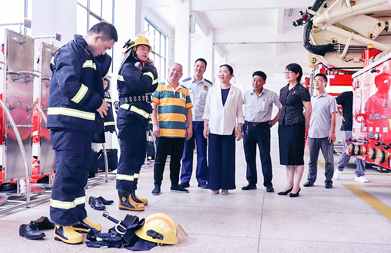 綠之韻集團(tuán)黨委書記劉云向消防救援站一直以來在維護(hù)群眾生命財(cái)產(chǎn)安全和社會(huì)和諧穩(wěn)定方面做出的貢獻(xiàn)表達(dá)了感謝。金陽消防救援站站長(zhǎng)何暉帶領(lǐng)大家實(shí)地參觀了器材裝備庫、體能訓(xùn)練館、活動(dòng)室、會(huì)議廳、宿舍等。目之所及干凈整潔,消防官兵精神飽滿,何站長(zhǎng)從火災(zāi)防控、執(zhí)勤備戰(zhàn)、消防裝備等方面進(jìn)行簡(jiǎn)要解說?!跋肴罕娭耄比罕娭?,我們將始終戰(zhàn)斗在防火滅火、救災(zāi)搶險(xiǎn)第一線,為保障群眾生命安全和財(cái)產(chǎn)安全保駕護(hù)航。”鏗鏘有力的誓言,一往無前的斗志,將軍人愛崗敬業(yè)、擔(dān)當(dāng)奉獻(xiàn)的本色展現(xiàn)得淋漓盡致。隨后,消防指戰(zhàn)員們?yōu)榇蠹規(guī)砹艘粓?chǎng)消防知識(shí)演練,從救援工具到火災(zāi)事故預(yù)防,從安全隱患排查到應(yīng)急搶險(xiǎn)救援,演練別開生面,讓人過目不忘。