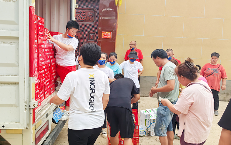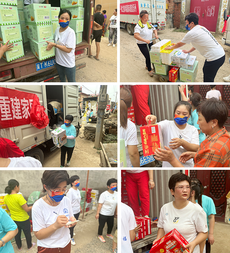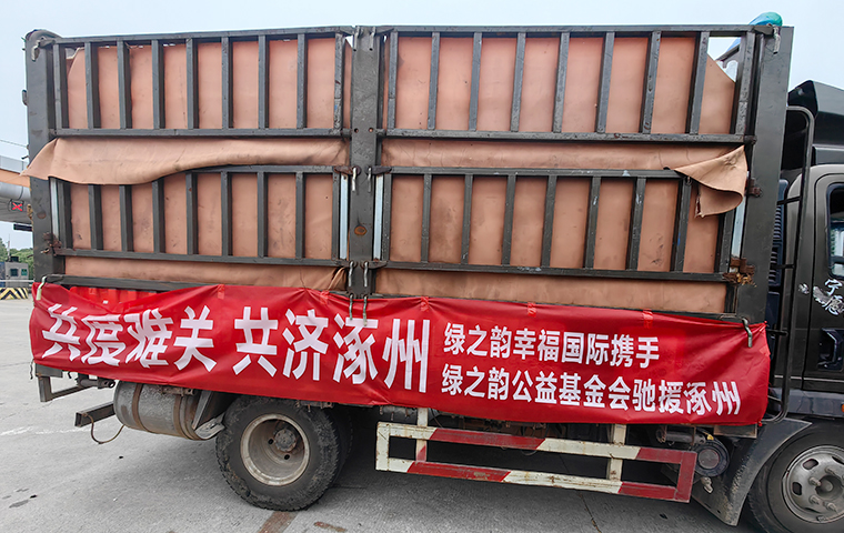 自災(zāi)情發(fā)生以來,湖南省綠之韻公益基金會高度關(guān)注河北涿州等地的受災(zāi)情況。在了解災(zāi)區(qū)重建的需求后,綠之韻公益基金會理事、綠之韻集團(tuán)副總裁夏運良第一時間召集河北地區(qū)的幸福國際家人們,迅速組織籌集援助物資,通過多方調(diào)度,及時調(diào)配了急需的水、食物、衛(wèi)生用品、生活用品等價值10萬余元的緊缺物資。家人們不懼酷暑,不畏險情,用最短時間將救援物資打包裝車,滿載物資的6輛大貨車從河北保定出發(fā),緊急奔赴災(zāi)情形勢嚴(yán)峻的河北省涿州市豆莊鎮(zhèn)中代屯村和東代屯村等地展開慰問救援工作。