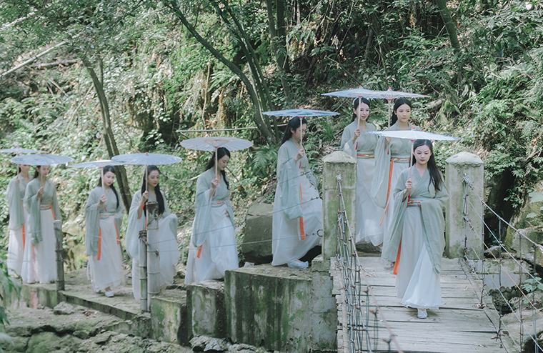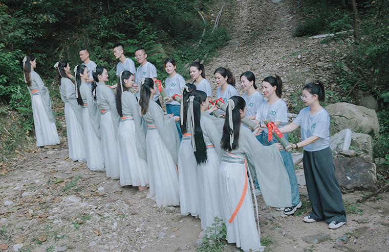 胡國安董事長帶領(lǐng)管理團(tuán)隊及9位綠韻仙子款款而行、踏水而來