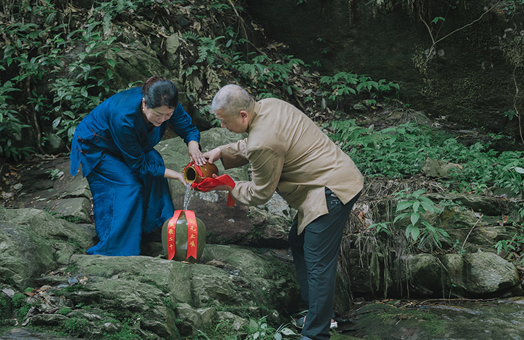 將第一壇小九溪源頭之水傳遞于勞嘉總裁、胡均安常務(wù)副總裁