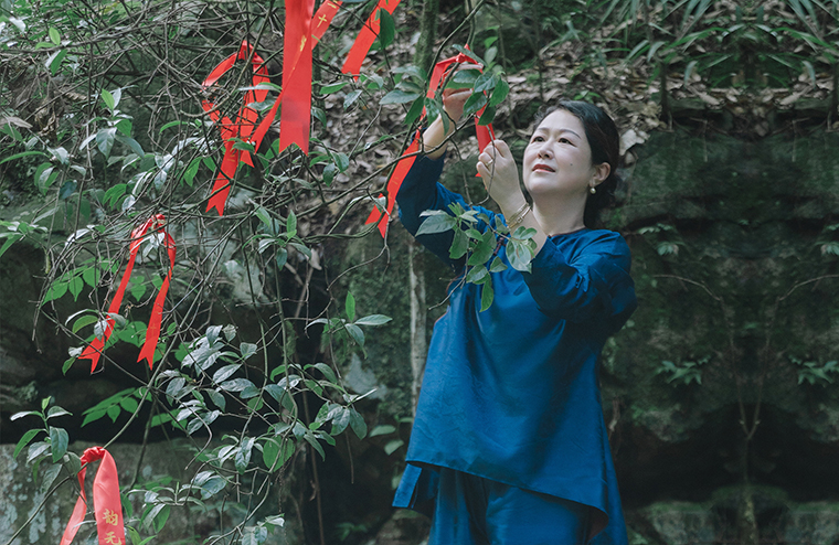 勞嘉總裁取紅綢系于古樹,真誠祈福