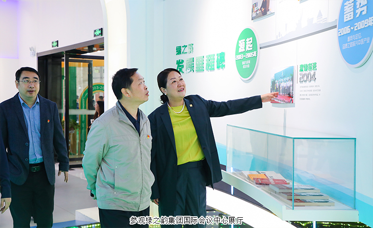 領(lǐng)導(dǎo)一行先后參觀了綠之韻集團(tuán)國際會議中心展廳、黨建文化教育基地,與勞嘉總裁圍繞綠之韻集團(tuán)的市場布局、產(chǎn)品研發(fā)生產(chǎn)、文化品牌建設(shè)、公益慈善活動及非公黨建工作等開展情況展開深入交流。領(lǐng)導(dǎo)一行肯定了綠之韻集團(tuán)積極履行社會責(zé)任和嚴(yán)格把關(guān)產(chǎn)品生產(chǎn)等工作方面取得的顯著成效,對綠之韻非公黨建工作的開展給與高度評價(jià)。