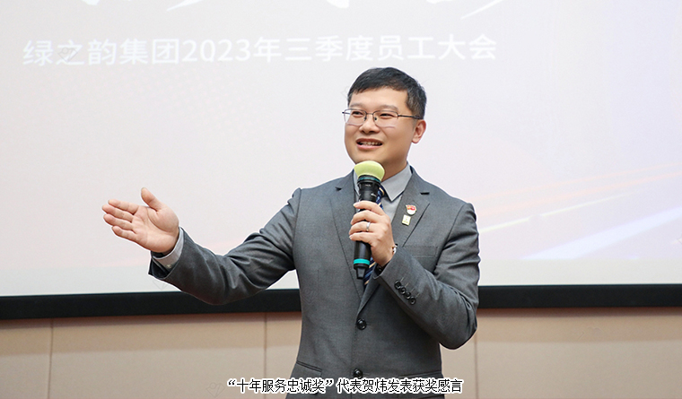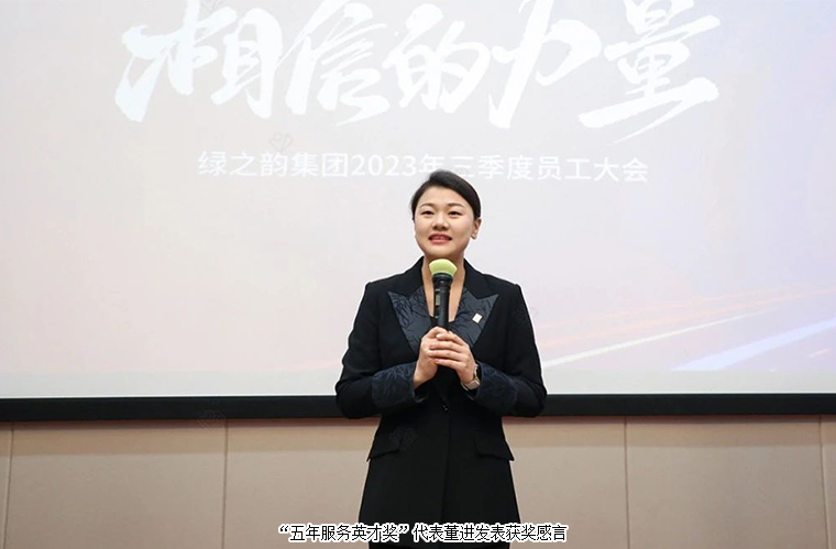 會(huì)議上,綠之韻集團(tuán)總裁勞嘉對(duì)獲獎(jiǎng)員工致以誠摯祝賀,對(duì)各部門、市場團(tuán)隊(duì)及奔赴在一線的伙伴們?nèi)齻€(gè)季度以來獲得的成績和辛勤付出表示真摯感謝。從一場場活動(dòng)、一次次接待、一篇篇新聞、一堂堂培訓(xùn)......回顧了綠之韻人的凝聚力和向心力。同時(shí)與大家分享了三個(gè)話題,一是希望每個(gè)人都具備“進(jìn)化”的能力,懂得“向上生長”,突破自己的極限,打破舒適圈,才能獲得更好的進(jìn)步和成長;二是時(shí)刻做好準(zhǔn)備,20歲的綠之韻,正風(fēng)華正茂,施展才華的舞臺(tái)越來越大,機(jī)會(huì)也會(huì)越來越多,無論所處任何崗位只有提升好自己的能力,不斷學(xué)習(xí),不斷錘煉,當(dāng)機(jī)會(huì)降臨才能把握住;三是清楚自己的定位,主動(dòng)支持他人,全力配合團(tuán)隊(duì),學(xué)會(huì)及時(shí)補(bǔ)位,集全員之智,聚全員之力,共同為實(shí)現(xiàn)綠之韻百年企業(yè)的宏偉目標(biāo)聚力前行。希望在座的每一位領(lǐng)導(dǎo)都能帶領(lǐng)每一位綠之韻的伙伴們,持續(xù)發(fā)揚(yáng)和傳承綠之韻家的文化和水的精神,來部署和迎接我們的2024年,共同為企業(yè)發(fā)展賦能添力!