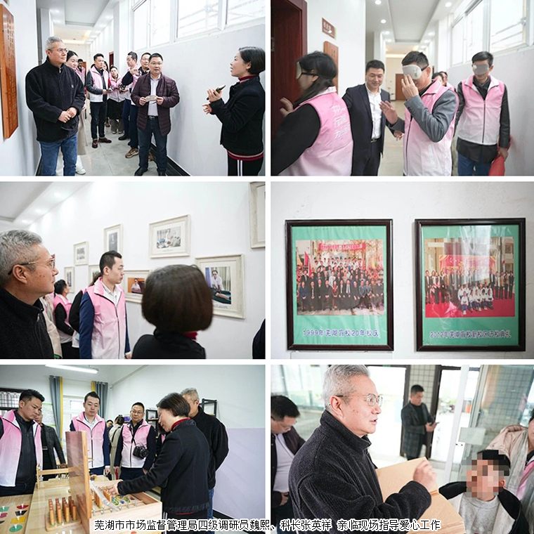 2023年12月10日,蕪湖市市場監(jiān)督管理局四級調研員魏熙、科長張英祥,綠之韻集團安徽分公司經(jīng)理趙軍,綠之韻碧波庭傳承委唐軍陳琪伉儷、田小強武宗華伉儷,水蓮花志愿者劉春香、邵賢剛楊云聰伉儷,以及當當老師、阿倫老師一同前往蕪湖盲校開展愛心公益捐助,為盲校藝術團捐贈樂器,送去溫暖和愛心,共同陪伴孩子們度過美好時光。