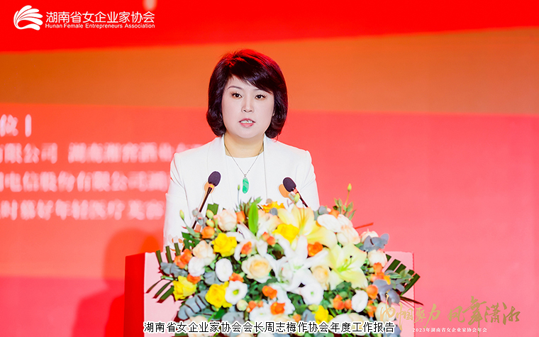 大會在莊嚴(yán)的主旋律中閃耀啟幕?;厥?023年,湖南省女企業(yè)家協(xié)會周志梅會長分享了一年來協(xié)會的重點(diǎn)工作和各地州市的工作亮點(diǎn),全面總結(jié)了協(xié)會 2023 年的工作成效同時對2024年度協(xié)會工作進(jìn)行部署。汪萍書記總結(jié)匯報了協(xié)會一年來協(xié)會的黨建工作成果。勞嘉副會長就協(xié)會財務(wù)工作情況及相關(guān)財務(wù)工作規(guī)劃作報告。李娟監(jiān)事長作監(jiān)事會報告。湖南省婦聯(lián)黨組書記、主席黃芳在講話時肯定了湖南省女企業(yè)家協(xié)會的工作成效,并傳達(dá)全國婦女代表大會精神。她表示,省婦聯(lián)伴隨省女企協(xié)從成立至今,省女企協(xié)帶領(lǐng)女企業(yè)家們以巾幗不讓須眉的豪情,在經(jīng)濟(jì)建設(shè)上施展才干,在社會公益里扶貧濟(jì)弱,為全省廣大女性樹立了榜樣,充分展示了新時代女性的風(fēng)采,值得喝彩點(diǎn)贊。希望女企協(xié)繼續(xù)堅持政治引領(lǐng)把方向,堅持服務(wù)會員促發(fā)展,堅持規(guī)范管理強(qiáng)基礎(chǔ),堅持提升素質(zhì)促成長,帶領(lǐng)湖南女企業(yè)家們凝心聚力,踐行新思想中筑牢巾幗信仰之基,做敢于追夢奮斗者的新時代女性為在中國式現(xiàn)代化道路上聚力建設(shè)幸福湖南貢獻(xiàn)巾幗力量。