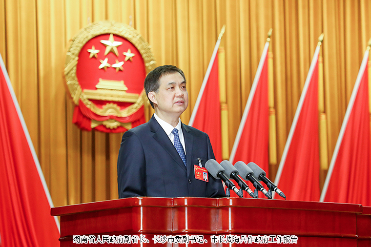 在熱烈的掌聲中,湖南省人民政府副省長、長沙市委副書記、市長周海兵向大會(huì)報(bào)告政府工作。報(bào)告共分三部分:一是2023年工作回顧;二是2024年工作重點(diǎn);三是提高政府治理能力和水平。周海兵說,2023年是全面貫徹黨的二十大精神的開局之年,是三年新冠疫情防控轉(zhuǎn)段后經(jīng)濟(jì)恢復(fù)發(fā)展的一年。我們在省委、省政府和市委的堅(jiān)強(qiáng)領(lǐng)導(dǎo)下,全面貫徹黨的二十大精神,深入開展學(xué)習(xí)貫徹習(xí)近平新時(shí)代中國特色社會(huì)主義思想主題教育,聚焦實(shí)現(xiàn) “三高四新”美好藍(lán)圖,深入踐行八個(gè) “走在前、作示范”要求,全力打好 “發(fā)展六仗”,踔厲奮發(fā)、創(chuàng)新實(shí)干,交出了一份高質(zhì)量發(fā)展的合格答卷。