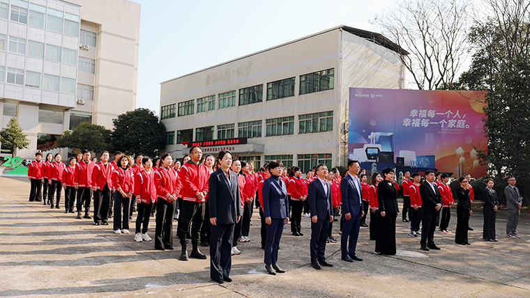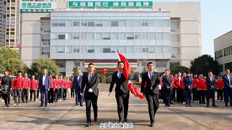 上午9點(diǎn)38分,在集團(tuán)公司前坪,全體員工統(tǒng)一著裝、整齊列隊(duì)迎接升旗儀式暨動(dòng)員大會(huì)。伴隨著莊嚴(yán)雄壯的國(guó)歌聲,鮮艷的五星紅旗冉冉升起,綠之韻家人向國(guó)旗行注目禮,內(nèi)心激蕩著對(duì)偉大祖國(guó)的無比熱愛和崇敬。
