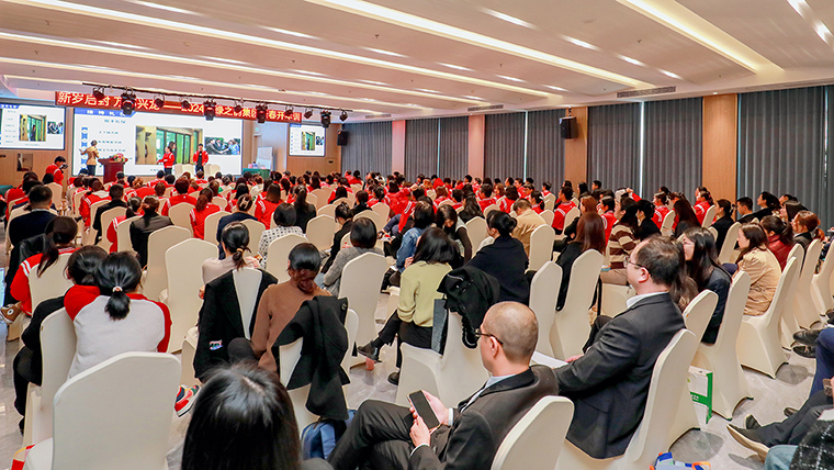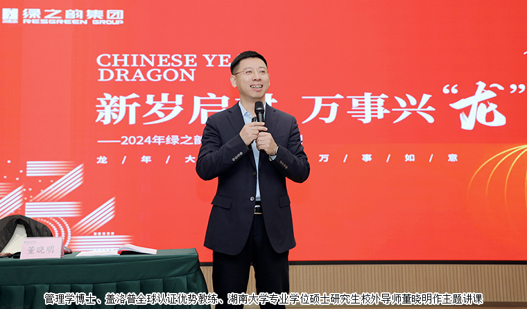 在全場學(xué)員的熱烈掌聲中,胡國安董事長作重要講話。他首先代表集團公司向這三天為大家傾心授課的各位老師表示衷心的感謝和崇高的敬意,向主動積極參加培訓(xùn)的學(xué)員們致以親切的問候。他表示,二十年來綠之韻始終把“弘揚優(yōu)秀文化和打造學(xué)習(xí)型企業(yè)”作為企業(yè)文化系統(tǒng)的一個重要組成部分和企業(yè)管理的核心要素,努力為全體員工搭建專業(yè)化的成長通道和具有幸福感的工作環(huán)境。公司投資20億元興建的綠之韻中心項目已經(jīng)全面進入裝修階段,即將投入使用。胡國安董事長進一步表示,每年的開年訓(xùn),既是一次學(xué)習(xí)會,也是一次動員會,希望參加本次開年訓(xùn)的各位學(xué)員都可以真正做到學(xué)以增知、學(xué)以致用、學(xué)以修身,在學(xué)習(xí)中進步,在進步中成長,逐步成長為家人的驕傲和同事的榜樣,實現(xiàn)自己不同人生階段的夢想。剛才我們對2024年集團工作計劃進行了宣講,希望各子公司、各個部門、各位員工認真學(xué)習(xí)貫徹年度計劃,快速進入工作狀態(tài),成為團隊中的“任意牌”,放到哪個崗位都可以發(fā)揮作用。在未來的工作中,大家也要將服務(wù)意識和團隊精神貫穿到各個層面,積極主動服務(wù)市場、服務(wù)企業(yè)、服務(wù)團隊、服務(wù)部門。要崇尚創(chuàng)新,善于用創(chuàng)新的思路,創(chuàng)造性地發(fā)現(xiàn)、解決和處理好工作中遇到的各種問題。要注重細節(jié),把每一件簡單的事做好,就是不簡單的;把每一件平凡的事做好,就是不平凡的。他強調(diào),今年是集團“五五規(guī)劃”的開局之年,讓我們以此次開年訓(xùn)為新起點,堅定信心,腳踏實地,推動集團公司平穩(wěn)向前發(fā)展。最后,他祝愿本次培訓(xùn)取得圓滿成功,祝愿2024所有的美好正在發(fā)生。