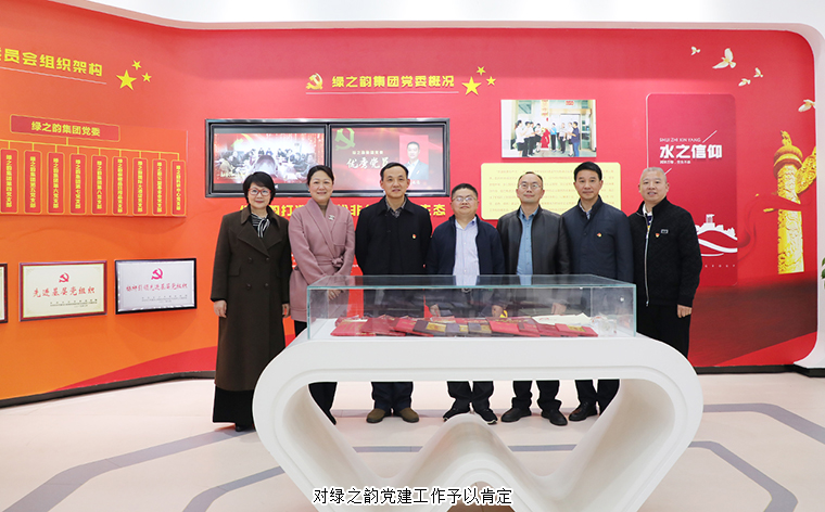 隨后,領(lǐng)導(dǎo)一行來(lái)到綠之韻集團(tuán),參觀了國(guó)際會(huì)議中心展廳、黨建文化教育基地。勞嘉總裁詳細(xì)講解了綠之韻集團(tuán)的產(chǎn)業(yè)布局、產(chǎn)品生產(chǎn)、文化品牌建設(shè)、公益慈善活動(dòng)及非公黨建工作的開(kāi)展情況。領(lǐng)導(dǎo)一行對(duì)綠之韻深耕大健康產(chǎn)業(yè)、積極投身公益慈善事業(yè)及“家的文化、水的精神”的企業(yè)文化理念給予高度評(píng)價(jià)和贊許。