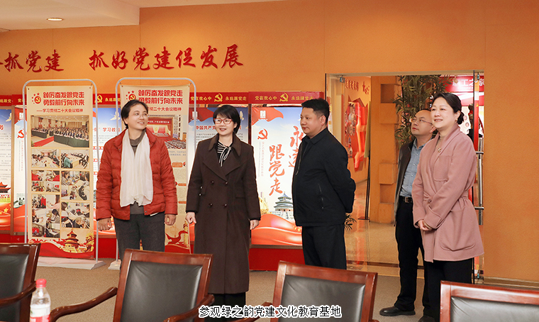 為貫徹落實(shí)中心黨總支關(guān)于“一月一課一片一實(shí)踐”支部主題黨日活動(dòng)的工作部署,強(qiáng)化黨員黨性修養(yǎng),堅(jiān)定理想信念,2024年3月8日,中共湖南省委統(tǒng)戰(zhàn)部干部處、機(jī)關(guān)黨委支部與綠之韻集團(tuán)聯(lián)合開(kāi)展主題黨日活動(dòng)。中共湖南省委統(tǒng)戰(zhàn)部干部處處長(zhǎng)鄧紅梅、湖南省委統(tǒng)戰(zhàn)部機(jī)關(guān)黨委常務(wù)副書(shū)記湯國(guó)旺、中央統(tǒng)戰(zhàn)部在湘掛職領(lǐng)導(dǎo)、瀏陽(yáng)市委統(tǒng)戰(zhàn)部副部長(zhǎng)焦清平等領(lǐng)導(dǎo)帶領(lǐng)黨員代表一行參加活動(dòng)。湖南省政協(xié)委員、綠之韻集團(tuán)總裁勞嘉,黨委書(shū)記劉云,綠之韻國(guó)際大酒店黨支部書(shū)記、常務(wù)副總裁胡均安,黨委副書(shū)記許達(dá)仲、工會(huì)主席馮紅等領(lǐng)導(dǎo)陪同。