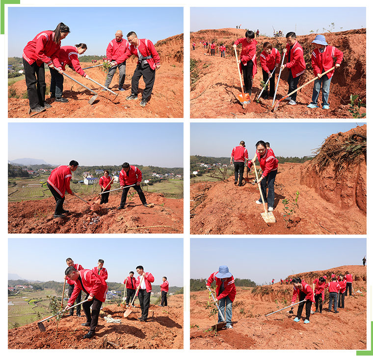 春風(fēng)吐綠、草木初萌。到達(dá)洞陽(yáng)鎮(zhèn)義務(wù)植樹基地后,林業(yè)站易申海站長(zhǎng)為大家講解了種植的步驟和要點(diǎn),綠之韻的黨員同志們?cè)趯W(xué)習(xí)了種樹的相關(guān)知識(shí)后,斗志昂揚(yáng),擼起袖子,以飽滿的狀態(tài)、實(shí)干的精神投入到植樹活動(dòng)中,揮鍬鏟土、扶苗培土,有條不紊完成每道工序,齊心協(xié)力栽種下一棵棵樹苗,確保栽一棵活一棵,植一片綠一方。綠之韻國(guó)際大酒店黨支部書記胡均安現(xiàn)場(chǎng)指導(dǎo)大家栽種技巧和方法,并表示,這不僅是一次植樹造林的黨日活動(dòng),更是一次綠色發(fā)展的宣傳教育。通過(guò)開展植樹節(jié)主題黨日活動(dòng),綠之韻的黨員同志們充分展現(xiàn)了勇?lián)厝蔚南蠕h模范作用,發(fā)揮了共產(chǎn)黨員的團(tuán)隊(duì)合作精神,以實(shí)際行動(dòng)爭(zhēng)當(dāng)新時(shí)代“綠水青山就是金山銀山”理念的傳播者和踐行者,共同為建設(shè)美麗瀏陽(yáng)增綠添彩。