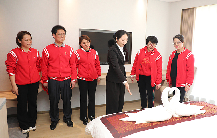 植樹活動(dòng)結(jié)束后,大家來(lái)到了綠之韻國(guó)際大酒店,在服務(wù)人員的講解下,對(duì)消防安全設(shè)施、功能布局、配套設(shè)施、文化植入、裝修用材進(jìn)行詳細(xì)了解,對(duì)主樓的大廳、廊道、商務(wù)中心、客房房間布局、房型配比等進(jìn)行了實(shí)地參觀。這是綠之韻國(guó)際大酒店提質(zhì)改造后接待的首次主題黨日活動(dòng)參觀,方便的設(shè)施、周到的服務(wù),讓在場(chǎng)的黨員同志紛紛點(diǎn)贊。綠之韻國(guó)際大酒店于2005年由綠之韻集團(tuán)投資建成,是一家集商務(wù)、會(huì)議、度假于一體的現(xiàn)代綜合型酒店。酒店設(shè)有總統(tǒng)套房、各類型客房及溫馨公寓共203間,同時(shí)配套中餐廳、多功能國(guó)際宴會(huì)廳,商務(wù)中心、精品商店等服務(wù)。酒店以先進(jìn)齊全的設(shè)施,綠色環(huán)保的環(huán)境,“家”的服務(wù)理念,為全球來(lái)到綠之韻總部的家人提供貼心和溫暖的服務(wù),滿足消費(fèi)者的多元化需求。