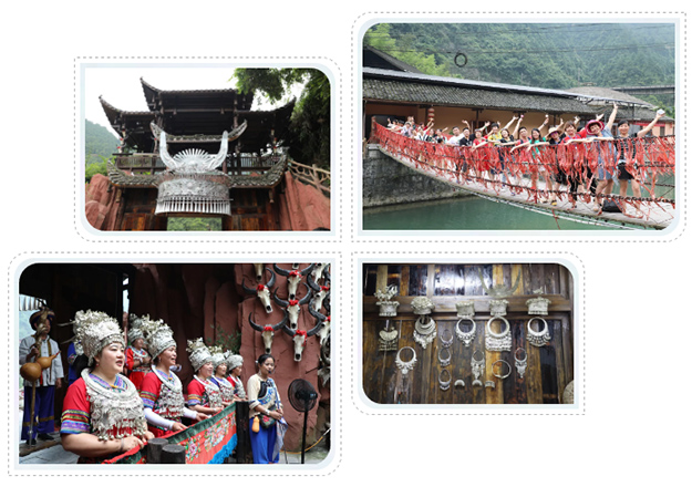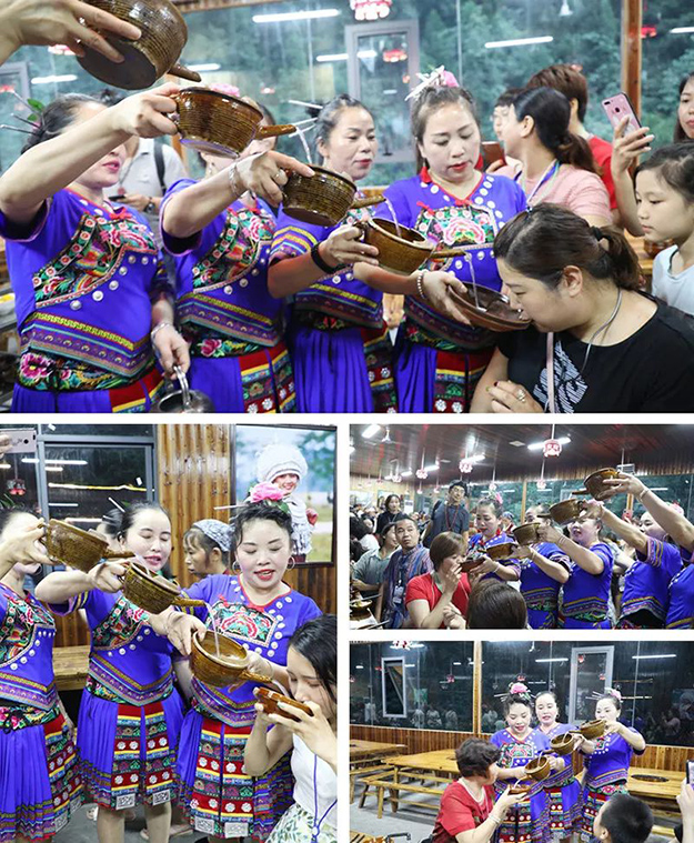 經(jīng)過了激情的漂流,綠之韻家人們來到了美麗的夯吾苗寨。夯吾苗寨在苗語中寓意著“峽谷溪邊美麗的苗寨”。寨內(nèi)保存著武陵大山少數(shù)民族特有的木質(zhì)結(jié)構(gòu)吊腳樓風(fēng)貌。綠之韻家人們?cè)诖擞H身體驗(yàn)唱山歌、飲攔門酒、哭嫁等苗族風(fēng)俗,體驗(yàn)“神秘湘西、茶富古丈"的氣息與魅力。綠之韻家人們?cè)趯?dǎo)游的帶領(lǐng)下來到苗族阿妹的家中品茗休憩,走街串巷感受苗寨不一樣的風(fēng)光。