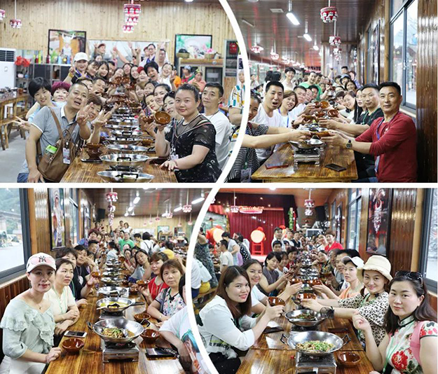 張家界魅力湘西國際文化廣場,是張家界武陵源景區(qū)歷史最悠久的演藝劇院,綠之韻家人們?cè)诖擞^看了《馬桑樹兒搭燈臺(tái)》《哭嫁》《湘西趕尸》等經(jīng)典劇目和場外篝火演出,體驗(yàn)了一把土家硬氣功和湘西三大蠱迷巫術(shù)表演上刀山、下火海。精彩的演出贏得現(xiàn)場綠之韻家人們的陣陣叫好聲。