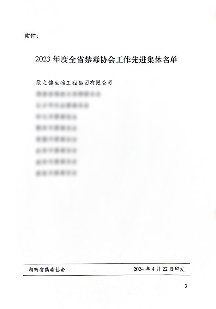 禁絕毒品,人人有責(zé),功在當(dāng)代,利在千秋。綠之韻集團黨委書記劉云在工作交流時表示,此次榮獲“2023年度湖南省禁毒協(xié)會工作先進集體”,既是一種榮譽,更是一種責(zé)任與使命。綠之韻集團作為湖南省禁毒協(xié)會第四屆理事會副會長單位,將充分發(fā)揮主人翁作用,在樹立企業(yè)自身良好形象的同時,積極引導(dǎo)廣大人民群眾自覺提高禁毒、防毒、拒毒的意識,不遺余力地參與省禁毒協(xié)會的各項宣傳工作,為加快建設(shè)法治湖南、平安湖南,為國家富強、民族振興、人民幸福奉獻自己的力量。