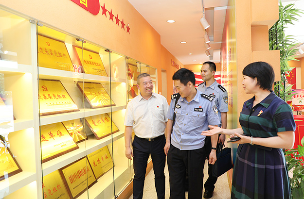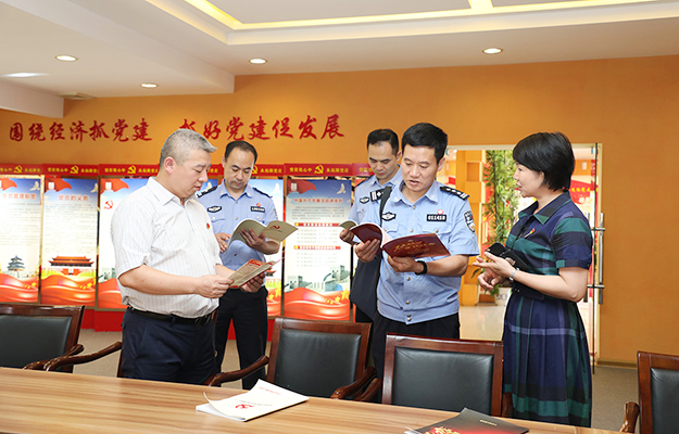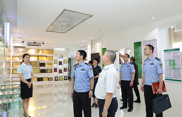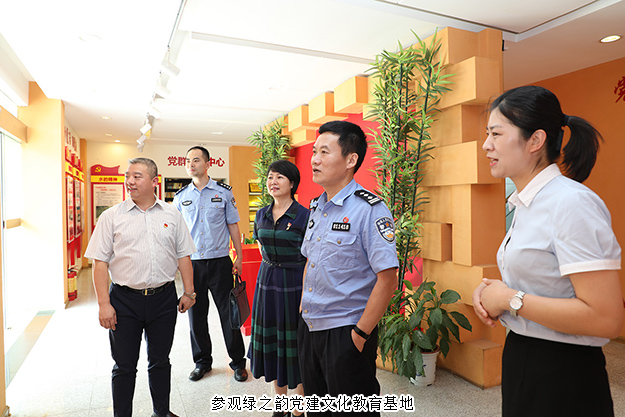 2019年6月28日,長沙市公安局機(jī)關(guān)紀(jì)委書記王海清、瀏陽市局督察大隊(duì)副大隊(duì)長尋延亮、瀏陽經(jīng)開區(qū)公安分局副局長彭治國、瀏陽市洞陽派出所所長朱慶超一行蒞臨綠之韻集團(tuán)調(diào)研指導(dǎo)。長沙市公安局特邀形象監(jiān)督員、綠之韻集團(tuán)副總裁胡均安,綠之韻集團(tuán)黨委書記劉云,黨委副書記許達(dá)仲等陪同調(diào)研。