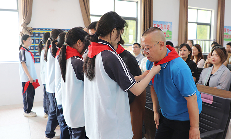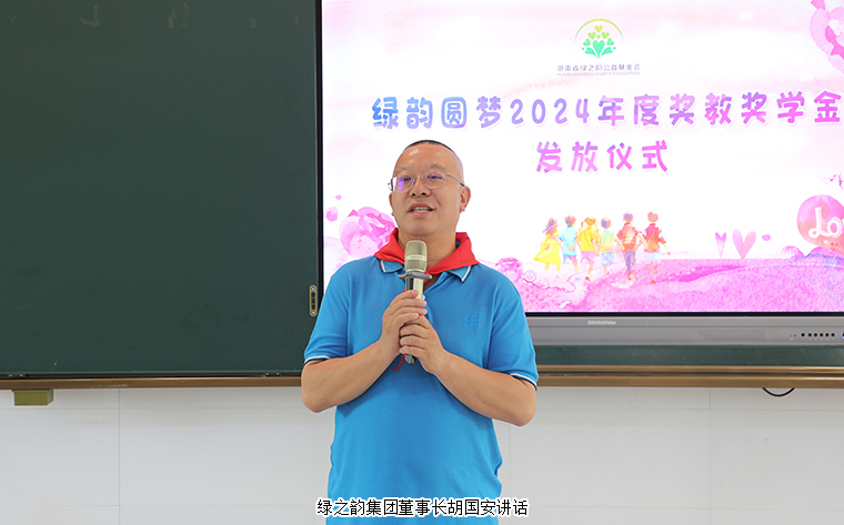 “時(shí)隔幾十年,再次戴上鮮艷的紅領(lǐng)巾,我感到十分光榮?!本G之韻集團(tuán)董事長(zhǎng)胡國(guó)安深情地說,“我也是從大山里走出來的人,通過讀書、上學(xué),然后工作、堅(jiān)持創(chuàng)業(yè)改變命運(yùn),然后又回到家鄉(xiāng)、建設(shè)家鄉(xiāng)。我相信我現(xiàn)在走過的路,在座的每一位同學(xué)未來也會(huì)和我一樣走過?!倍嗄陙?,綠之韻集團(tuán)始終堅(jiān)持把公益事業(yè)上升到企業(yè)發(fā)展戰(zhàn)略高度。先后在全國(guó)各地援建了11所希望學(xué)校,投入300萬元在全國(guó)各地開展“綠韻圓夢(mèng)?書香助學(xué)”活動(dòng),陸續(xù)投入1000萬元開展“樹人行動(dòng)”,投入1000萬元設(shè)立“圓夢(mèng)基金”持續(xù)開展綠韻圓夢(mèng)行動(dòng)……累計(jì)向社會(huì)捐贈(zèng)款物8600多萬元。2023年,綠之韻在安化大橋?qū)W校設(shè)立專項(xiàng)獎(jiǎng)學(xué)金,給予那些品學(xué)兼優(yōu)的學(xué)生和辛苦耕耘的老師更多鼓勵(lì)和學(xué)習(xí)的機(jī)會(huì)?!吧倌陱?qiáng)則國(guó)強(qiáng),青少年是祖國(guó)的希望與未來。今年是發(fā)放獎(jiǎng)教獎(jiǎng)學(xué)金的第二年,未來,我們還希望影響和帶動(dòng)更多有愛心的人士參與到捐資助學(xué)行動(dòng)中來,幫助青少年健康成長(zhǎng),為安化教育事業(yè)高質(zhì)量發(fā)展作出積極貢獻(xiàn)。我也希望在座的每一位青年的學(xué)生都通過自己的努力,實(shí)現(xiàn)自己的人生夢(mèng)想,回報(bào)家鄉(xiāng)、回報(bào)社會(huì),建設(shè)美麗富饒新安化?!?