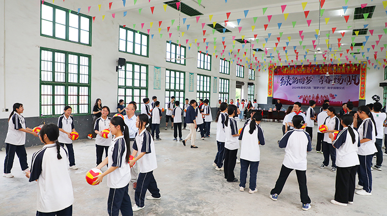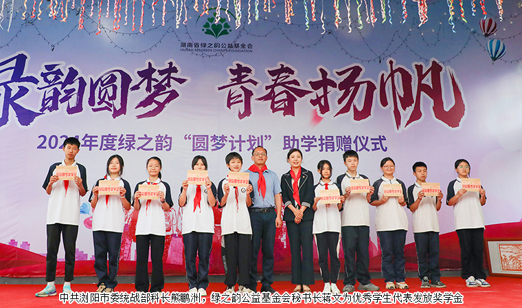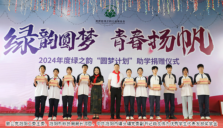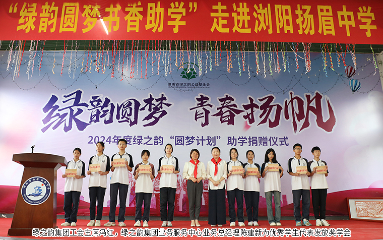 為貫徹落實(shí)習(xí)近平新時(shí)代中國特色社會(huì)主義思想主題教育,鞏固教育脫貧攻堅(jiān)成果,優(yōu)化教育資源配置,營造濃厚的愛學(xué)、勤學(xué)、好學(xué)、比學(xué)氛圍,2024年5月30日,湖南省綠之韻公益基金會(huì)“綠韻圓夢(mèng)行動(dòng)”走進(jìn)瀏陽市鎮(zhèn)頭鎮(zhèn)揚(yáng)眉中學(xué),捐贈(zèng)20萬元愛心資金用于少年宮建設(shè)及學(xué)校獎(jiǎng)學(xué)獎(jiǎng)教活動(dòng)。中共瀏陽市委統(tǒng)戰(zhàn)部常務(wù)副部長焦清平,致公黨瀏陽工委主委、瀏陽市科技局局長鄧恩,中共瀏陽市鎮(zhèn)頭鎮(zhèn)黨委副書記肖友偉,瀏陽市鎮(zhèn)頭鎮(zhèn)教育發(fā)展中心黨總支書記、主任陳元林,瀏陽市鎮(zhèn)頭鎮(zhèn)揚(yáng)眉中學(xué)黨支部書記、校長萬錦春,綠之韻集團(tuán)總裁、湖南省綠之韻公益基金會(huì)理事長勞嘉,綠之韻集團(tuán)黨委書記劉云,綠之韻集團(tuán)工會(huì)主席馮紅,湖南省綠之韻公益基金會(huì)秘書長蔣文,綠之韻集團(tuán)業(yè)務(wù)服務(wù)中心業(yè)務(wù)總經(jīng)理陳建新等領(lǐng)導(dǎo)嘉賓參加活動(dòng)。