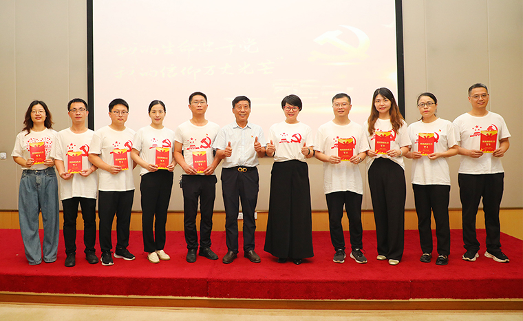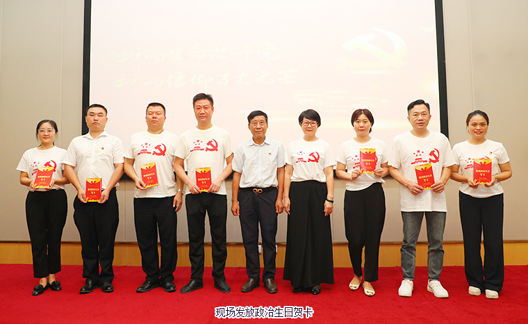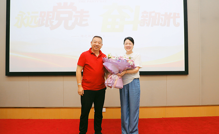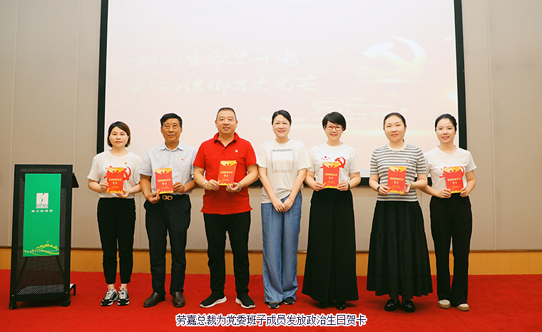 綠之韻集團(tuán)黨委委員、業(yè)務(wù)服務(wù)中心業(yè)務(wù)總經(jīng)理陳建新?lián)位顒又鞒??;顒右潦?,與會黨員通過主題視頻學(xué)習(xí)建黨節(jié)由來,溫習(xí)黨性知識,共同回顧中國共產(chǎn)黨波瀾壯闊103載的奮斗歷程。會上,綠之韻集團(tuán)黨委委員楊丹作上半年黨委各支部活動開展情況匯報及下半年黨委工作安排。隨后,大會舉行新黨員宣誓儀式。黨員代表梁淑琳、羅永帥作分享,綠之韻集團(tuán)第二黨支部書記陳建新、保健日用品黨支部書記楊丹分別為預(yù)備黨員羅瓊蕾、許長征佩戴黨徽、發(fā)放黨章。2024 年入黨積極分子代表李軍作分享發(fā)言?;顒蝇F(xiàn)場,綠之韻集團(tuán)黨委為所有在司黨員發(fā)放政治生日賀卡,合唱《沒有共產(chǎn)黨就沒有新中國》,共同慶賀黨的生日,現(xiàn)場一片濃厚的愛國愛黨氛圍。