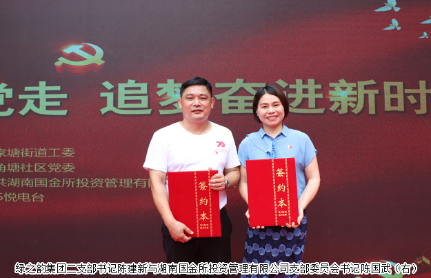 活動最后,綠之韻集團二支部與湖南國金所支部舉行了結(jié)對共建簽約儀式。綠之韻集團黨委書記劉云表示,這不僅是一次支部之間的結(jié)隊共建、互幫互學(xué)活動,更是一次愛國主義教育,將熱愛祖國的種子播撒在每位黨員的心田里,也讓所有的黨員再一次體會了身為中國人的驕傲和對祖國的深情。未來,兩個支部可以優(yōu)勢互補,互取所長,在今后的工作與生活中,始終保持黨員的初心,牢記肩頭的使命,一如既往的積極履行黨員的義務(wù)和職責(zé),發(fā)揮黨員的先鋒模范帶頭作用,砥礪奮進,為實現(xiàn)“中國夢,綠之韻夢”做出更大的貢獻!