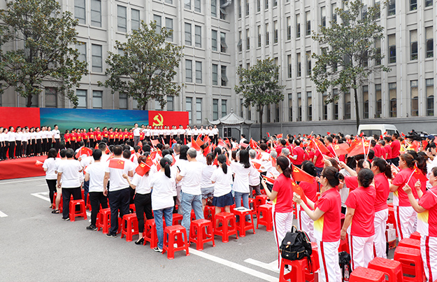 新中國成立70年來,中國人民在中國共產(chǎn)黨領(lǐng)導(dǎo)下浩然前行,書寫了一部感天動地的奮斗史詩。70年風(fēng)云激蕩,中華民族迎來了從站起來、富起來到強起來的偉大飛躍,正昂首闊步走在實現(xiàn)中華民族偉大復(fù)興中國夢的征途上。歷史見證了新中國的滄桑巨變,亦承載著接續(xù)前行的寶貴經(jīng)驗與迎接未來的光明希望。此次活動以戶外黨課教育與紅色歌舞相結(jié)合的創(chuàng)新形式,聯(lián)動駐地區(qū)域內(nèi)的所有黨建兄弟單位及所轄黨員、群眾,進一步接受紅色洗禮,不忘初心跟黨走,追夢奮進新時代。