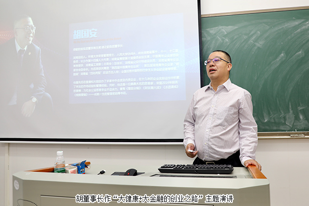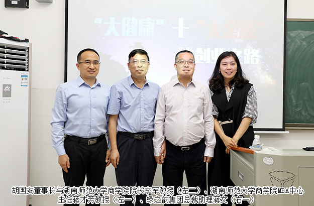 2019年6月23日,湖南師范大學(xué)客座教授、綠之韻集團(tuán)董事長(zhǎng)胡國(guó)安應(yīng)湖南師范大學(xué)邀請(qǐng),為“湖南師范大學(xué)第六屆MBA企業(yè)案例大賽暨全國(guó)管理案例精英賽校園突圍賽”作評(píng)委主席。并以《“大健康”+“大金融” 的創(chuàng)業(yè)之路》為主題,為湖南師范大學(xué)2018級(jí)MBA學(xué)員、金融碩士、工商管理研究生100余人帶來(lái)一場(chǎng)振奮人心、精彩紛呈的講座。通過分享自己真實(shí)的創(chuàng)業(yè)故事,鼓勵(lì)學(xué)員們不要因?yàn)槊悦6摱裙怅?,在未?lái)的生活中,永遠(yuǎn)不要停止前進(jìn)的腳步,不放棄最初的夢(mèng)想。