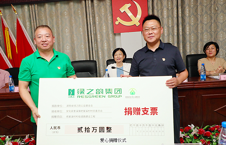 會上,綠之韻集團(tuán)常務(wù)副總裁、綠之韻公益基金會副理事長胡均安代表綠之韻公益基金會向老屋溪村捐贈20萬元愛心款項(xiàng)。胡均安常務(wù)副總裁表示,作為一名安化籍企業(yè)家,同時(shí)也是一名安化縣人大代表,積極投身到建設(shè)家鄉(xiāng)的事業(yè)中去,是他與生俱來的責(zé)任與使命。多年來,鄉(xiāng)村振興一直是綠之韻公益基金會的重要關(guān)注點(diǎn)之一,而他也一直最關(guān)心和牽掛家鄉(xiāng)安化的建設(shè)。綠之韻先后在安化投資建設(shè)黃精、杜仲等中藥材種植基地,捐建水電、道路、橋梁、生活廣場等硬件設(shè)施,為老人、婦女進(jìn)行免費(fèi)的兩癌篩查,為學(xué)校捐建校車、圖書、體育設(shè)備,為孩子們設(shè)立獎教獎學(xué)金,累計(jì)捐贈款物1000多萬,全方位支持家鄉(xiāng)鄉(xiāng)村振興建設(shè)、文化教育事業(yè)發(fā)展。今年5月20日,綠之韻集團(tuán)在長沙人文地標(biāo)橘子洲舉行3000人綠跑大型公益品牌活動,現(xiàn)場捐贈100萬元愛心款項(xiàng)至綠韻圓夢公益項(xiàng)目。其中,捐贈20萬用于奎溪鎮(zhèn)老屋溪村村級道路建設(shè)項(xiàng)目,改善當(dāng)?shù)亟煌顩r,促進(jìn)經(jīng)濟(jì)發(fā)展,幫助老屋溪村的居民打開致富路、安心路、幸福路,提高家鄉(xiāng)人民的幸福感、獲得感、滿足感。此次,綠之韻集團(tuán)黨委一行來到安化尋夢初心、飲水思源,希望各位優(yōu)秀的黨支部書記、黨員代表充分發(fā)揮先鋒模范作用,與老屋溪村共建聯(lián)誼,盡己所能,將企業(yè)發(fā)展成果惠及家鄉(xiāng)人民,也希望有更多有愛心的人士和企業(yè)也能夠參與到愛心公益事業(yè)中來,大力支持家鄉(xiāng)各項(xiàng)事業(yè)發(fā)展,為建設(shè)新時(shí)代高質(zhì)量、富饒美麗的安化貢獻(xiàn)一份力量。