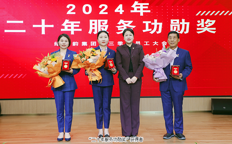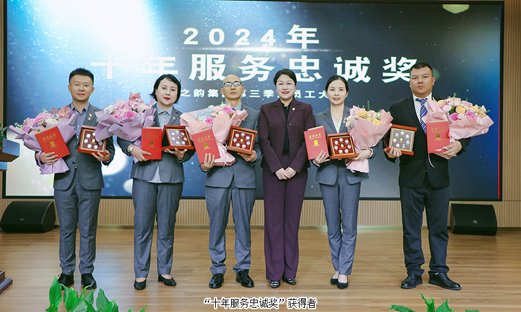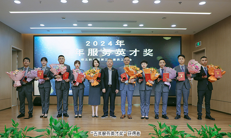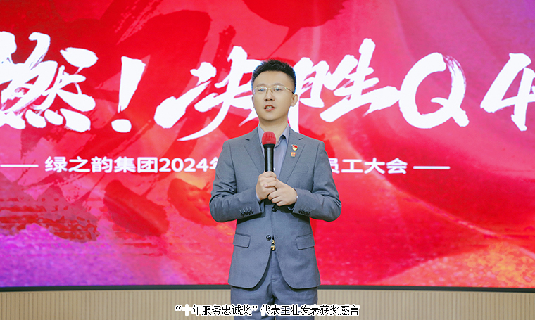 為表彰先進(jìn)、樹立榜樣、激勵(lì)奮進(jìn),大會(huì)對(duì)2024年度“五年服務(wù)英才獎(jiǎng)”、“十年服務(wù)忠誠獎(jiǎng)”、“二十年服務(wù)功勛獎(jiǎng)”進(jìn)行了表彰,鼓勵(lì)全體員工以優(yōu)秀為標(biāo)桿,勇于追求卓越,在工作中實(shí)現(xiàn)個(gè)人價(jià)值與奮斗目標(biāo)。勞嘉總裁、胡均安常務(wù)副總裁依次為獲獎(jiǎng)優(yōu)秀個(gè)人頒發(fā)榮譽(yù)獎(jiǎng)杯和證書。獲獎(jiǎng)代表王壯、黃茜發(fā)表獲獎(jiǎng)感言,分享了他(她)們加入綠之韻的成長歷程,并表達(dá)了將始終保持積極進(jìn)取的態(tài)度,珍惜榮譽(yù)、奮勇有為、不斷提升的決心。