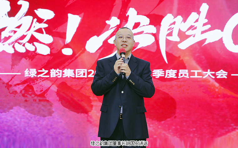 在全場熱烈的掌聲和萬眾矚目中,綠之韻集團(tuán)胡國安董事長發(fā)表重要講話。他首先代表集團(tuán)公司向獲得“五年服務(wù)英才獎(jiǎng)”、“十年服務(wù)忠誠獎(jiǎng)”、“二十年服務(wù)功勛獎(jiǎng)”的獲獎(jiǎng)員工表示熱烈祝賀,并向全體員工的辛勤付出致以誠摯的謝意。他充分肯定全體綠之韻人在前三個(gè)季度的努力工作,號(hào)召全體綠之韻人向優(yōu)秀學(xué)習(xí),向優(yōu)秀看齊。他強(qiáng)調(diào),五年、十年、二十年受到嘉獎(jiǎng)的伙伴都是因?yàn)椴粩嗟嘏蛨?jiān)持,才在綠之韻這個(gè)舞臺(tái)收獲了成長,實(shí)現(xiàn)了人生價(jià)值,成為了同事們學(xué)習(xí)的榜樣,也是這份堅(jiān)持成就了今天的綠之韻。面對(duì)空前激烈的市場競爭環(huán)境,我們的市場團(tuán)隊(duì)表現(xiàn)出了強(qiáng)大的團(tuán)隊(duì)凝聚力和拼搏精神,我們也感受到了各市場團(tuán)隊(duì)強(qiáng)大的力量和激情,這份力量鼓舞感染每一個(gè)綠之韻人。他希望,全體員工積極宣傳綠之韻的企業(yè)文化,參與到企業(yè)文化的實(shí)踐中,深耕對(duì)企業(yè)文化的提煉和產(chǎn)品理念的挖掘,全面增強(qiáng)對(duì)集團(tuán)企業(yè)文化的認(rèn)同感和榮譽(yù)感,共同推動(dòng)企業(yè)的持續(xù)發(fā)展。隨著綠之韻中心的落成啟用,也希望全體員工以嶄新的姿態(tài)和更高的要求面向未來,團(tuán)結(jié)拼搏,奮發(fā)進(jìn)取,為將綠之韻打造成為社會(huì)尊敬、員工幸福、合作者愉快的企業(yè)努力奮斗!