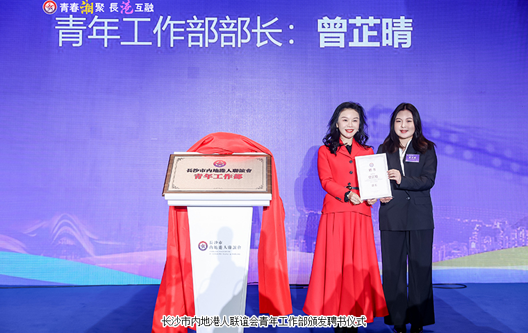 長沙市內(nèi)地港人聯(lián)誼會會長、湖南高橋大市場股份有限公司總經(jīng)理、華誼兄弟(長沙)電影文化城有限公司董事長羅曉發(fā)表致辭并宣布長沙市內(nèi)地港人聯(lián)誼會青年工作部正式成立。她表示,青年是國家的未來,是民族的希望,也是聯(lián)誼會不斷發(fā)展壯大的重要力量。成立青年工作部,是順應(yīng)時(shí)代需求、推動聯(lián)誼會事業(yè)持續(xù)發(fā)展的重要舉措。聯(lián)誼會將組織各類青年交流活動,促進(jìn)兩地青年在思想、文化、科技等方面的碰撞與融合,激發(fā)青年人的創(chuàng)新精神和創(chuàng)業(yè)熱情,推動青年工作部成為長沙與香港兩地青年交流合作的重要力量。她強(qiáng)調(diào),聯(lián)誼會一定不負(fù)眾望,以更加飽滿的熱情、更加扎實(shí)的工作作風(fēng)、更加創(chuàng)新的精神,為兩地的繁榮發(fā)展作出新的更大貢獻(xiàn)!隨后,中共湖南省委統(tǒng)戰(zhàn)部港澳臺處處長梁良與羅曉會長共同為青年工作部揭牌,并現(xiàn)場為青年部部長、常務(wù)副部長、副部長頒發(fā)聘書。