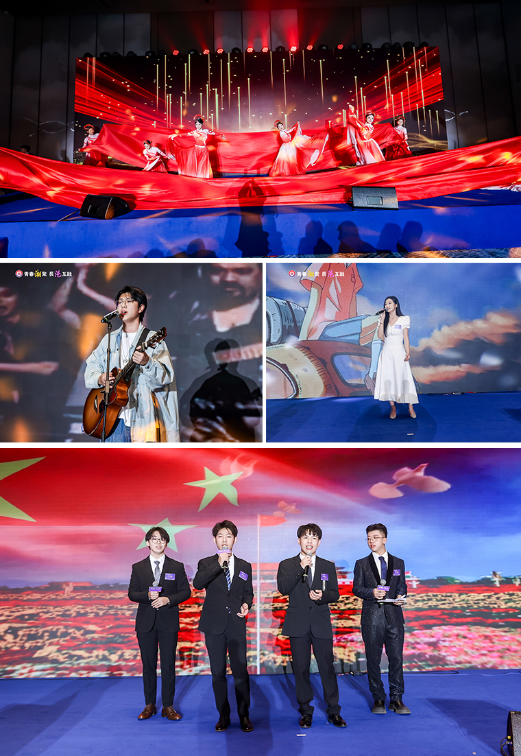 此次聯(lián)誼活動設(shè)置了慶祝晚宴。來自香港的青年學(xué)生們?yōu)榇蠹耀I(xiàn)上了精彩的演出,悅耳的歌聲、優(yōu)美的舞蹈、激動人心的抽獎(jiǎng)環(huán)節(jié)將活動現(xiàn)場的氣氛一次次帶向高潮。最后,在全場大合唱《我和我的祖國》的歌聲中,長沙市內(nèi)地港人聯(lián)誼會成立二周年慶典暨青年工作部成立儀式圓滿結(jié)束。
