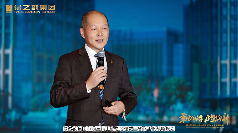 華燈初上,隨著悠揚的音樂響起,晚宴正式拉開帷幕。綠之韻集團市場營銷中心總經(jīng)理戴三省就集團2025年戰(zhàn)略規(guī)劃進行詳細解讀。他深入淺出地分析了當前大健康產(chǎn)業(yè)的發(fā)展趨勢與市場機遇,并從“三個堅持”“三個融合”“三個自信”等方面詳細闡述了綠之韻集團要如何基于自身優(yōu)勢,精準布局、靶向發(fā)力,將優(yōu)勢轉(zhuǎn)化為勝勢,助力綠之韻高質(zhì)量發(fā)展。