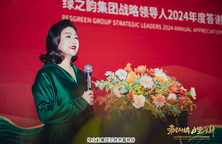 隨后,綠之韻集團總裁勞嘉致辭。她首先向蒞臨今天活動現(xiàn)場的各位領(lǐng)導、各位高管、各位市場領(lǐng)導人以及全體工作人員致以熱烈的歡迎、誠摯的感謝和親切的問候。2024年,是綠之韻集團在復雜多變的市場環(huán)境中砥礪前行、突破創(chuàng)新的一年。在胡國安董事長的帶領(lǐng)下,綠之韻遵循“企業(yè)發(fā)展與國家戰(zhàn)略同頻共振、自身發(fā)展與事業(yè)伙伴共贏共榮”的指導思想,正心明道,行穩(wěn)致遠,取得了一系列可喜的成績。綠之韻的發(fā)展離不開國家政策的支持,離不開行業(yè)的規(guī)范健康發(fā)展,離不開在座各位的齊心協(xié)力。剛剛召開的中央經(jīng)濟工作會議,明確提出:“要從制度和法律上把對國企民企平等對待的要求落下來,從政策和輿論上鼓勵支持民營經(jīng)濟和民營企業(yè)發(fā)展壯大,依法保護民營企業(yè)產(chǎn)權(quán)和企業(yè)家權(quán)益。”今年5月份,國務院已將“兩個條例”納入了立法預備修訂計劃。這些政策利好、行業(yè)利好,都為我們未來的發(fā)展注入了強勁的動力和信心。她相信,在各級領(lǐng)導的指導和支持下,在胡國安董事長的帶領(lǐng)下,在全體事業(yè)伙伴們和員工的共同努力下,打開了新篇章的綠之韻,一定會在這個充滿變革和機遇的美好時代,創(chuàng)造出更加輝煌的未來。我們始終要相信趨勢的力量,相信規(guī)律的力量,相信信仰的力量,相信相信的力量。