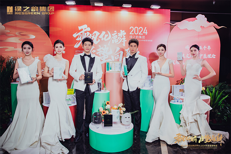 二十余載,綠之韻集團堅守產(chǎn)品為基、創(chuàng)新為魂,深度聚焦用戶體驗,傾研發(fā)之力,鑄創(chuàng)新之魂,多款經(jīng)典產(chǎn)品獨樹一幟,屢獲市場青睞,口碑載道,贊譽如潮。晚宴現(xiàn)場,綠之韻集團總裁助理蔣文作產(chǎn)品形象升級發(fā)布,將品牌視覺升級的具體規(guī)劃一一呈現(xiàn)。從全新的品牌標識設計,融合時尚與經(jīng)典元素,彰顯獨特品牌個性;到統(tǒng)一且富有質(zhì)感的包裝風格,提升產(chǎn)品辨識度與吸引力;再到線上線下協(xié)同,精心營造全方位且沉浸式的品牌感知空間,雕琢連貫一致的品牌印象。燈光聚焦,音樂奏響,隨著產(chǎn)品T臺秀的開始,模特們手持著一款款新品走上舞臺,每一款產(chǎn)品在聚光燈下都閃耀著獨特的魅力,其設計細節(jié)、創(chuàng)新功能被毫無保留地呈現(xiàn),臺下眾人的目光緊緊跟隨,沉浸于這場產(chǎn)品與時尚完美融合的視覺盛宴之中。
