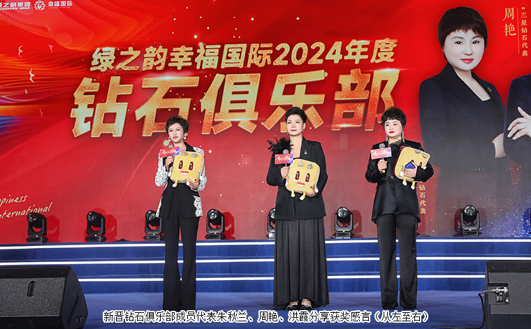 璀璨鉆石,如耀眼星辰,綻放光芒萬(wàn)丈。鉆石的光輝,映照著他們無(wú)畏無(wú)懼、奮勇向前的堅(jiān)毅身影;熠熠華彩,照亮了奮進(jìn)的拼搏征程。他(她)們,作為萬(wàn)千幸福代言人的榜樣,已然成為幸福國(guó)際蓬勃發(fā)展的中堅(jiān)力量,更是驅(qū)動(dòng)市場(chǎng)滾滾向前的磅礴力量。綠之韻集團(tuán)總裁勞嘉,幸福國(guó)際市場(chǎng)商學(xué)院特聘教授、綠韻悅喜智能科技有限公司首席研發(fā)專(zhuān)家駱春崗,綠韻悅喜智能科技有限公司總經(jīng)理?xiàng)钚宪帲G之韻幸福國(guó)際市場(chǎng)商學(xué)院執(zhí)行院長(zhǎng)廖鵬,綠之韻幸福國(guó)際市場(chǎng)商學(xué)院副院長(zhǎng)袁夢(mèng)分別為2024年度新晉一星、二星、三星鉆石俱樂(lè)部成員頒發(fā)榮耀勛章。獲獎(jiǎng)代表周艷、洪霞、朱秋蘭,滿(mǎn)懷激動(dòng)與感恩,依次分享獲獎(jiǎng)感言。