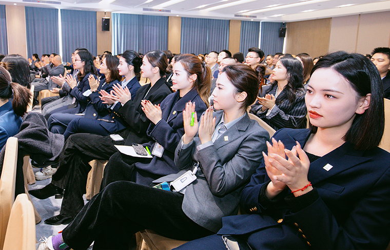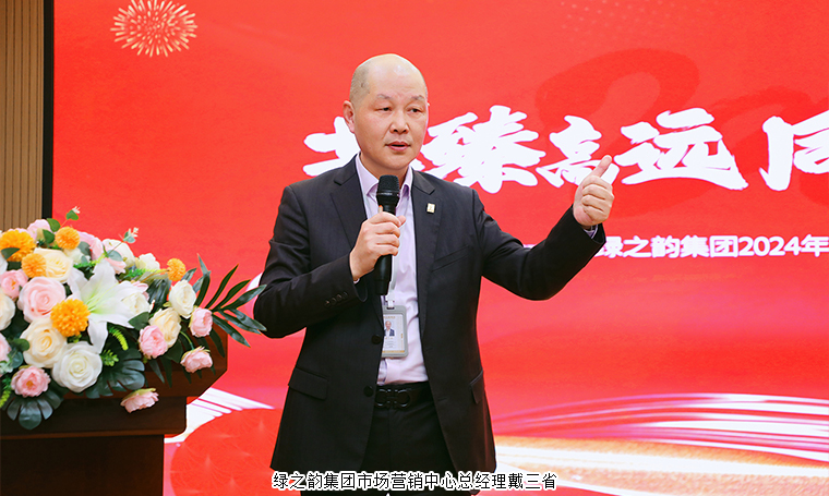 隨后,綠之韻集團(tuán)常務(wù)副總裁胡均安發(fā)表致辭。他表示,2024年,是綠之韻第五個五年規(guī)劃的關(guān)鍵之年,市場是關(guān)鍵中的關(guān)鍵。每一份成績的背后,是我們產(chǎn)品和服務(wù)的質(zhì)量,是我們不懼挑戰(zhàn)和奮力拼搏的能量,是我們市場部門和業(yè)務(wù)支持部門的力量,也是我們汗水和夢想的重量。新的一年,綠之韻中心的即將投入使用,意味著新的工作環(huán)境、新的行為規(guī)范、新的企業(yè)形象、新的目標(biāo)規(guī)劃。期望全體員工盡我所能,敬我不能,在思想上充好電,在形象上練好功,在行動上提好速,在工作上聚好力,以全新的面貌和必勝的信心迎接新的開始,以更加優(yōu)異的業(yè)績,書寫出綠之韻更加輝煌的篇章。