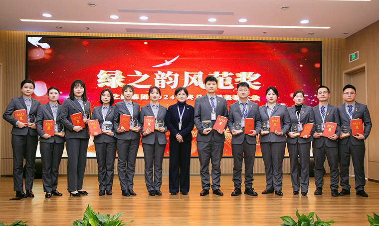 他(她)們宛如深植厚土的勁柏,于崗位之上篤定堅守,在時光的砥礪中淬煉出超凡本領(lǐng);他(她)們緊緊追隨領(lǐng)導(dǎo)的思想旗幟,以無畏的勇氣和不懈的努力,奮力揮毫?xí)鴮懼G之韻的宏偉發(fā)展篇章。在備受矚目的頒獎環(huán)節(jié),綠之韻集團(tuán)總裁勞嘉為2024年度“優(yōu)秀管理者”頒發(fā)榮譽(yù);常務(wù)副總裁胡均安、副總裁劉淑娟、副總裁夏運(yùn)良為2024年度“綠之韻風(fēng)范獎”頒發(fā)榮譽(yù);市場營銷中心總經(jīng)理戴三省為2024年度“綠之韻服務(wù)能手”頒發(fā)榮譽(yù);黨委書記劉云分別為2024年度綠之韻集團(tuán)黨委“先進(jìn)基層黨組織”“最具創(chuàng)意主題黨日活動”“優(yōu)秀黨務(wù)工作者”“優(yōu)秀共產(chǎn)黨員”頒發(fā)榮譽(yù);常務(wù)副總經(jīng)理梅其慧為2024年度“最佳新人獎”“優(yōu)秀指導(dǎo)老師”頒發(fā)榮譽(yù)。